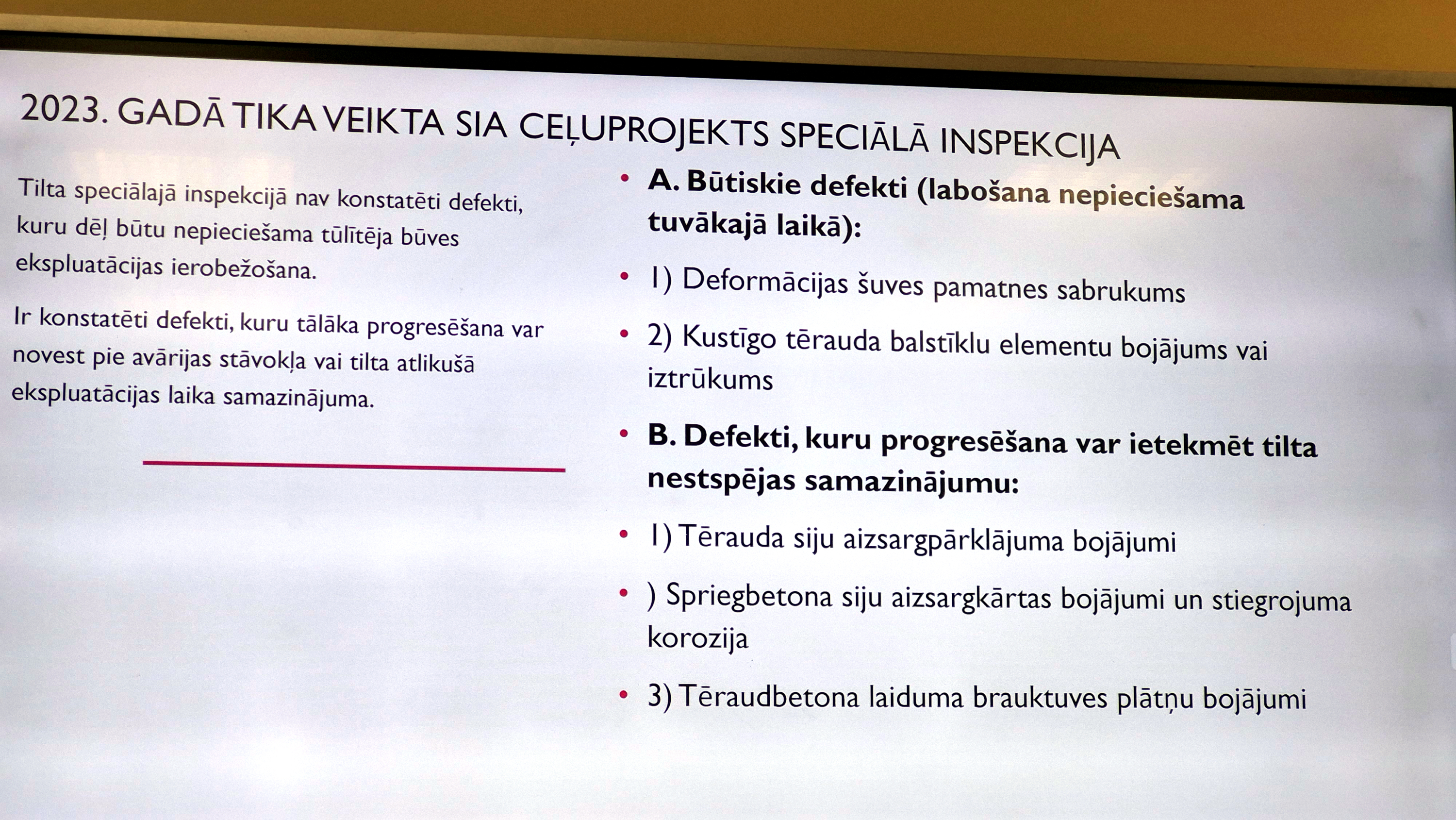 Pirms diviem gadiem veiktajā speciālajā inspekcijā norādīts – defektu tālāka progresēšana var beigties ar avārijas stāvokli.